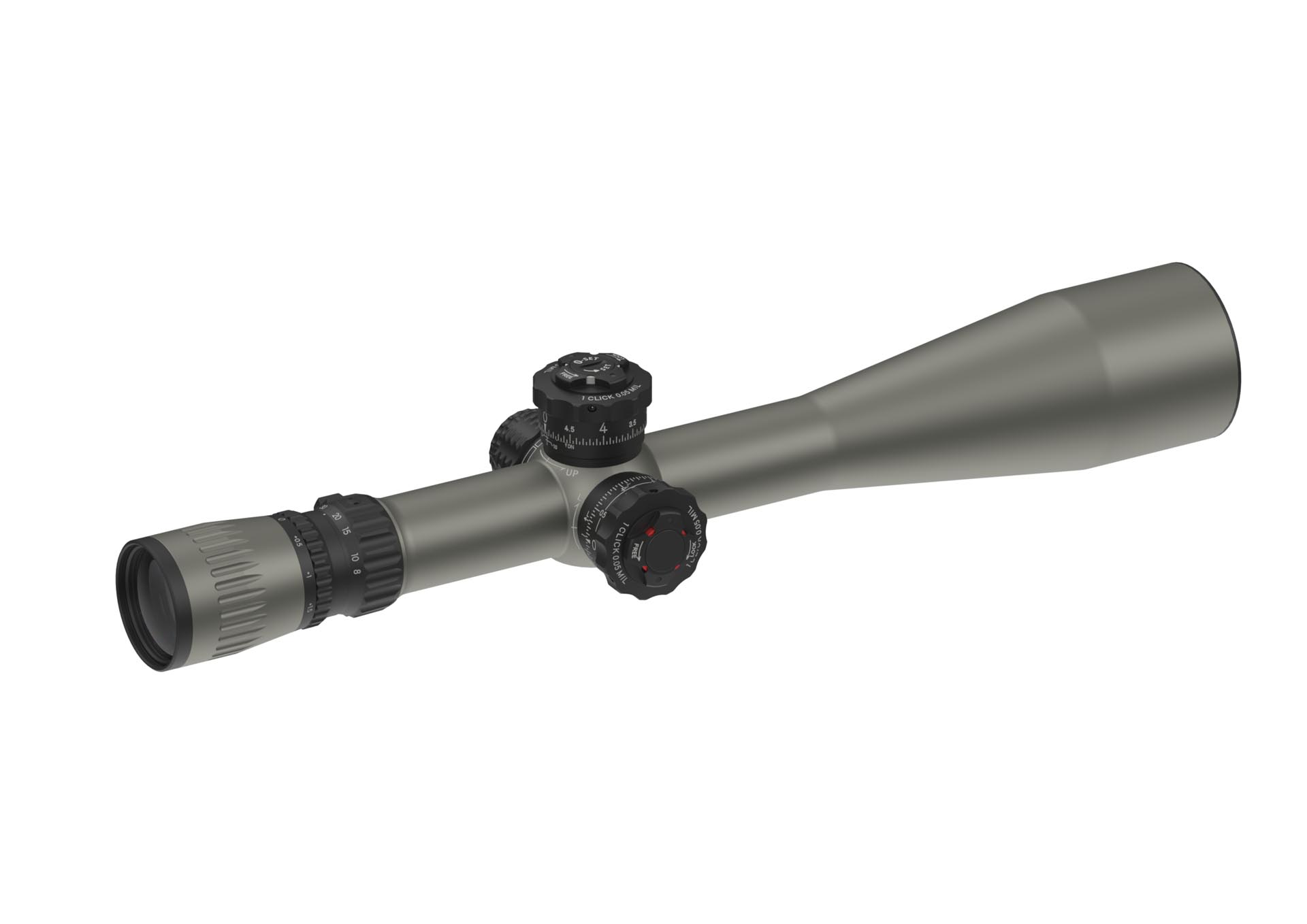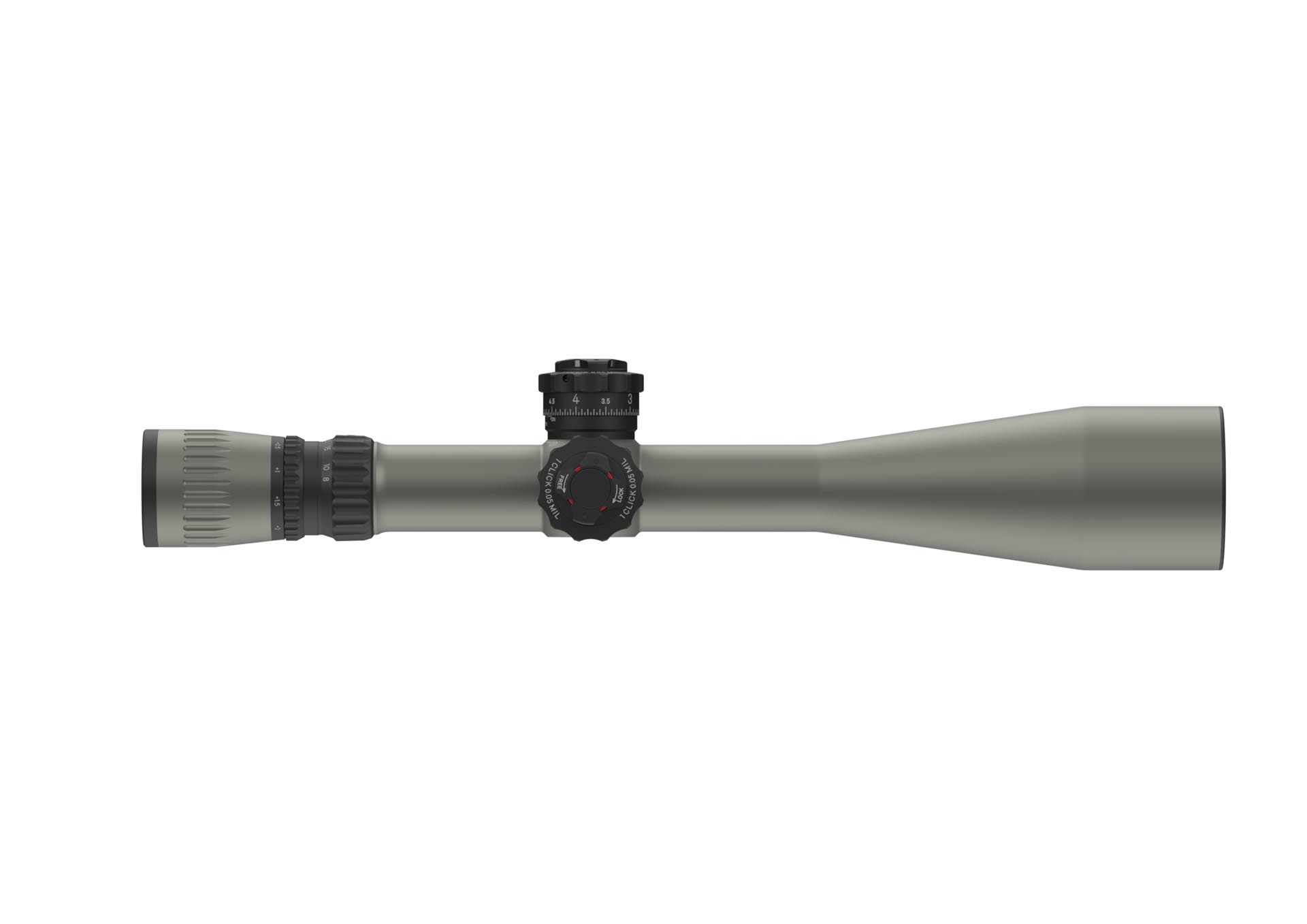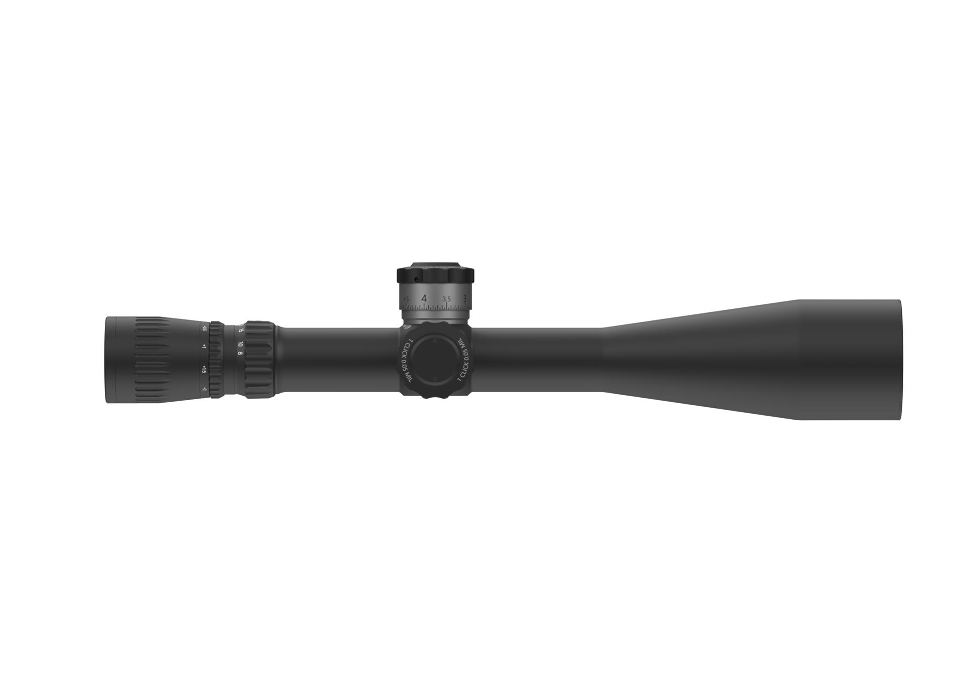 Oversized dials for elevation, windage, and side focus for easy adjustment. The elevation dial has a 0-set function.