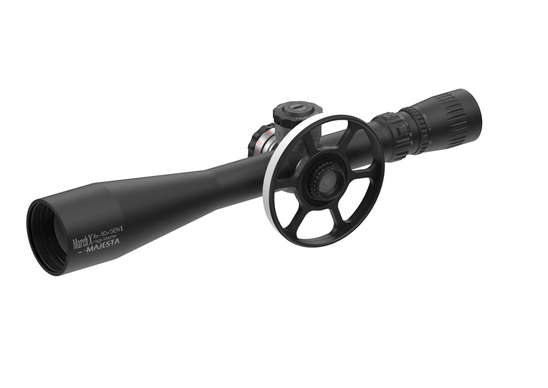 This March 8x-80×56 SFP High Master Wide Angle Scope Gen II offers outstanding image quality and the world’s highest magnification, 80x, as of today. This scope will be engraved “Majesta” befitting its name.